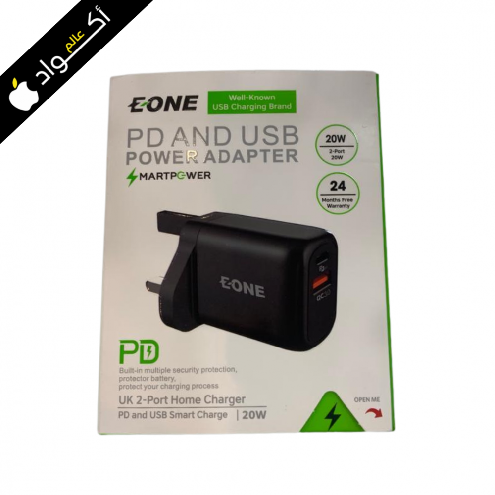 فيش شاحن جداري من EONE بقوة 20w بمنفذين بي دي و كوالكم 3 EONE
